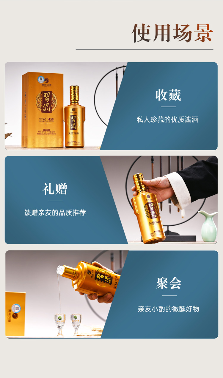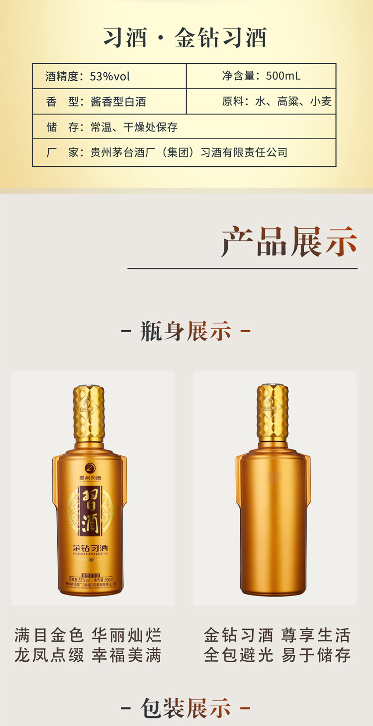 金钻尊龙凯时 - 人生就是搏!,产于中国酱香型白酒核心产区——赤水河中游河谷,选用优质糯高粱、小麦、水为原料,秉承纯粮固态发酵传统工艺潜心酿造。产品精选不同年份的窖藏老酒和优质基酒,经白酒酿造专家团队倾心打造而成。具有酱香突出、醇和丰满、细腻体净、后味绵长、空杯留香持久和本品固有风格。